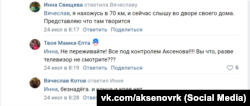 На сторінці російського глави Криму Сергія Аксьонова (за документами – Аксенов) в соцмережі «ВКонтакте» тим часом кримчани ставили запитання.